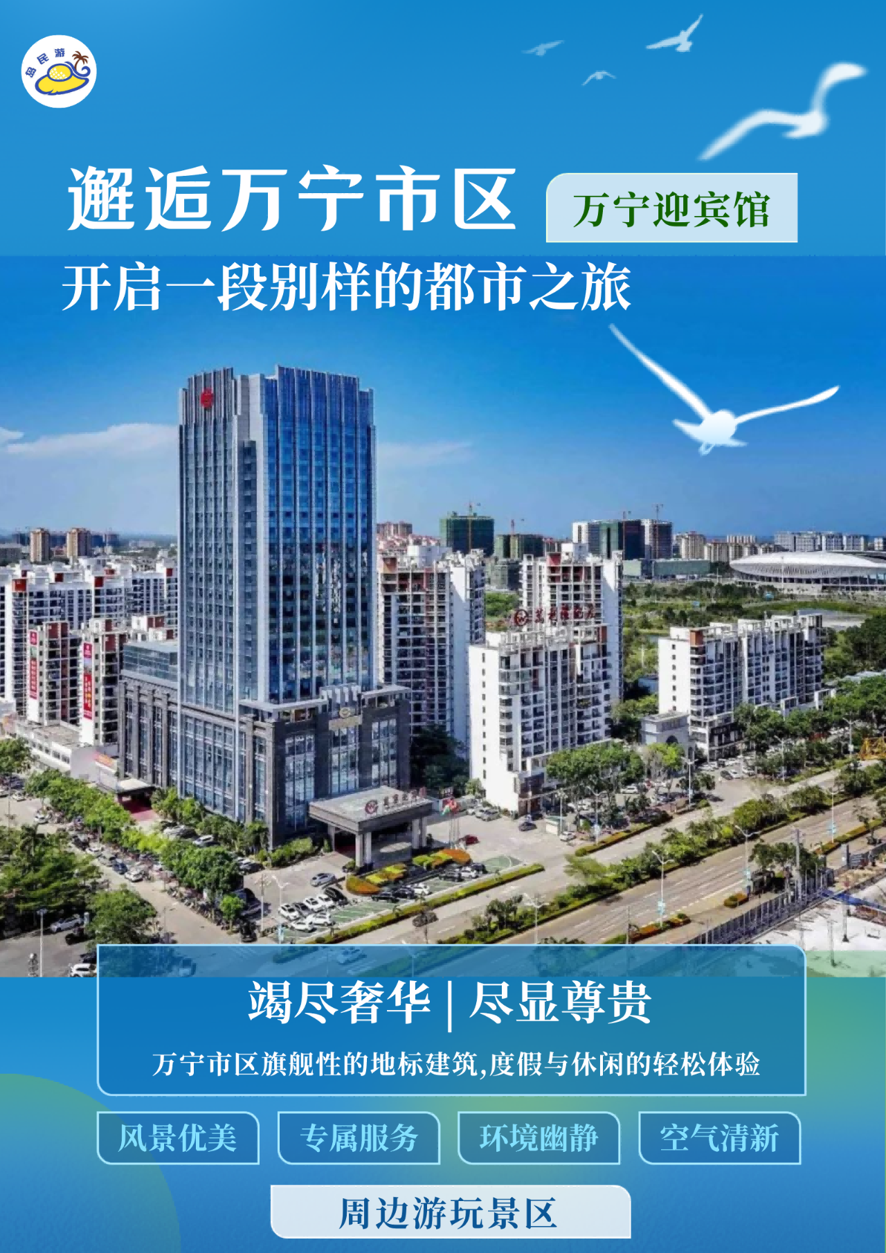 错峰出游~【万宁迎宾馆酒店】388元抢商务房1间夜(大双任选)+2大1小自助早餐+儿童乐园+泳池,有效期到2025年12月30日(东线)