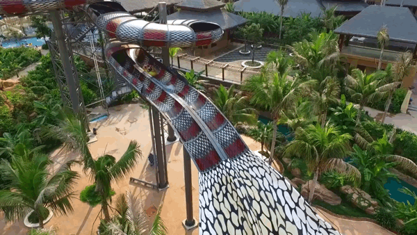这里拥有造浪泳池、眼镜蛇滑梯、冲浪池等
