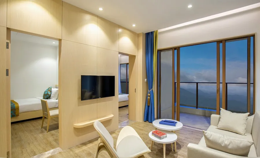 豪华山景套房(两房一厅)- 399抢购二房一厅荣逸温情(暑期专享套餐)豪华山景房+含4大2小自助早餐+亲子娱乐中心项目+沙滩篝火晚会等+效期至12月31日,亲子度假精选好去处!周末不加价,可转赠!