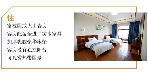 1、蜜枝园大/双床或火山岩大/双1间1晚(任选一间);